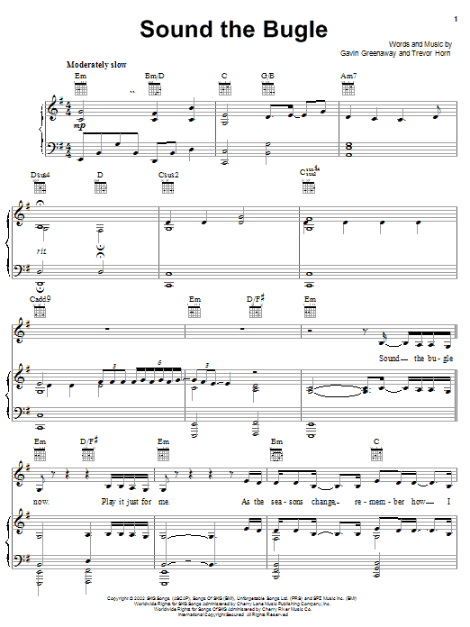 Gavin Greenaway Sound The Bugle sheet music, chords, lyrics - Printable PDF for Piano, Vocal & Guitar (Right-Hand Melody)
