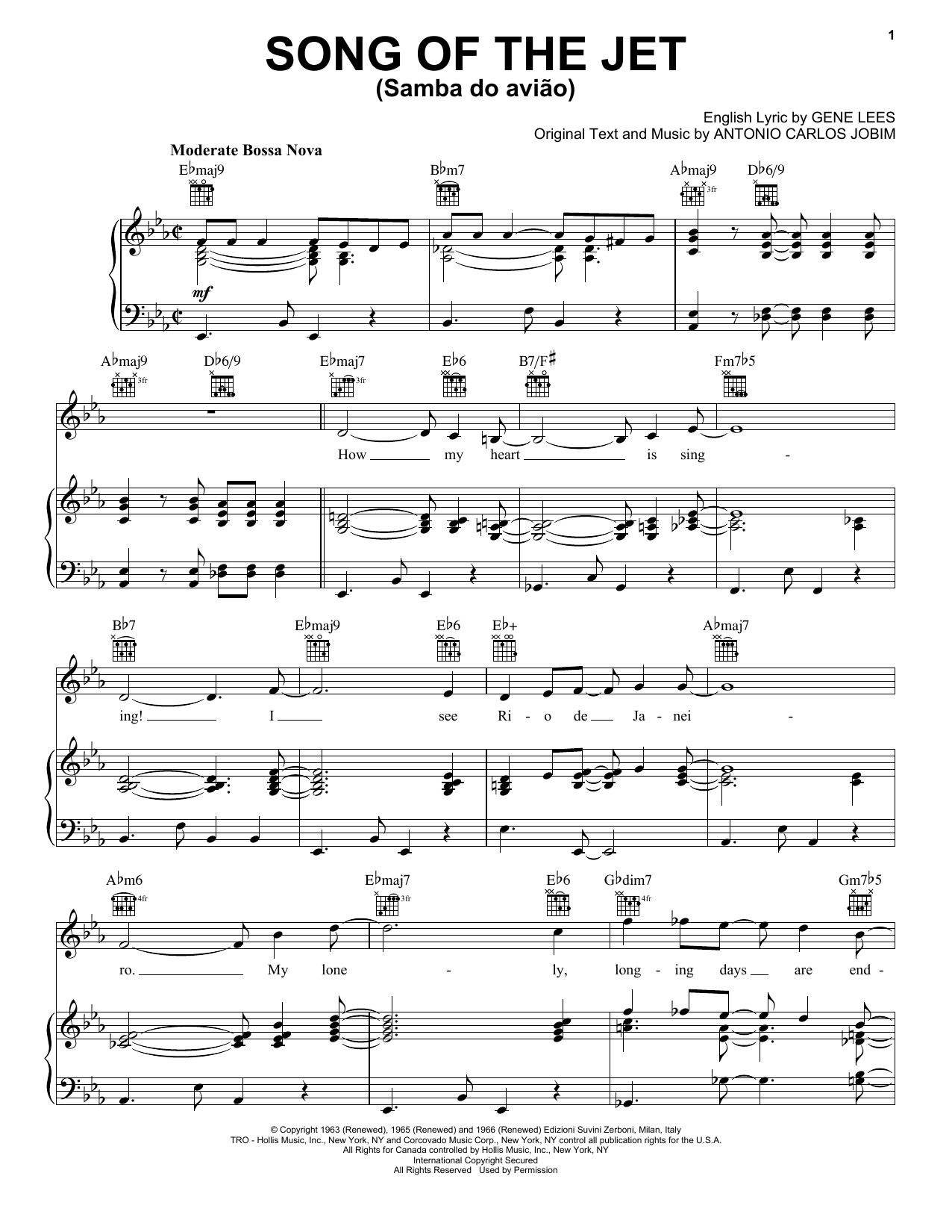 Gene Lees "Song Of The Jet (Samba do Aviao)" Sheet Music
