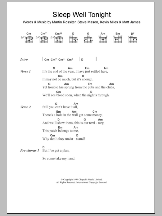 Gene Sleep Well Tonight sheet music, chords, lyrics - Printable PDF for Lyrics & Chords