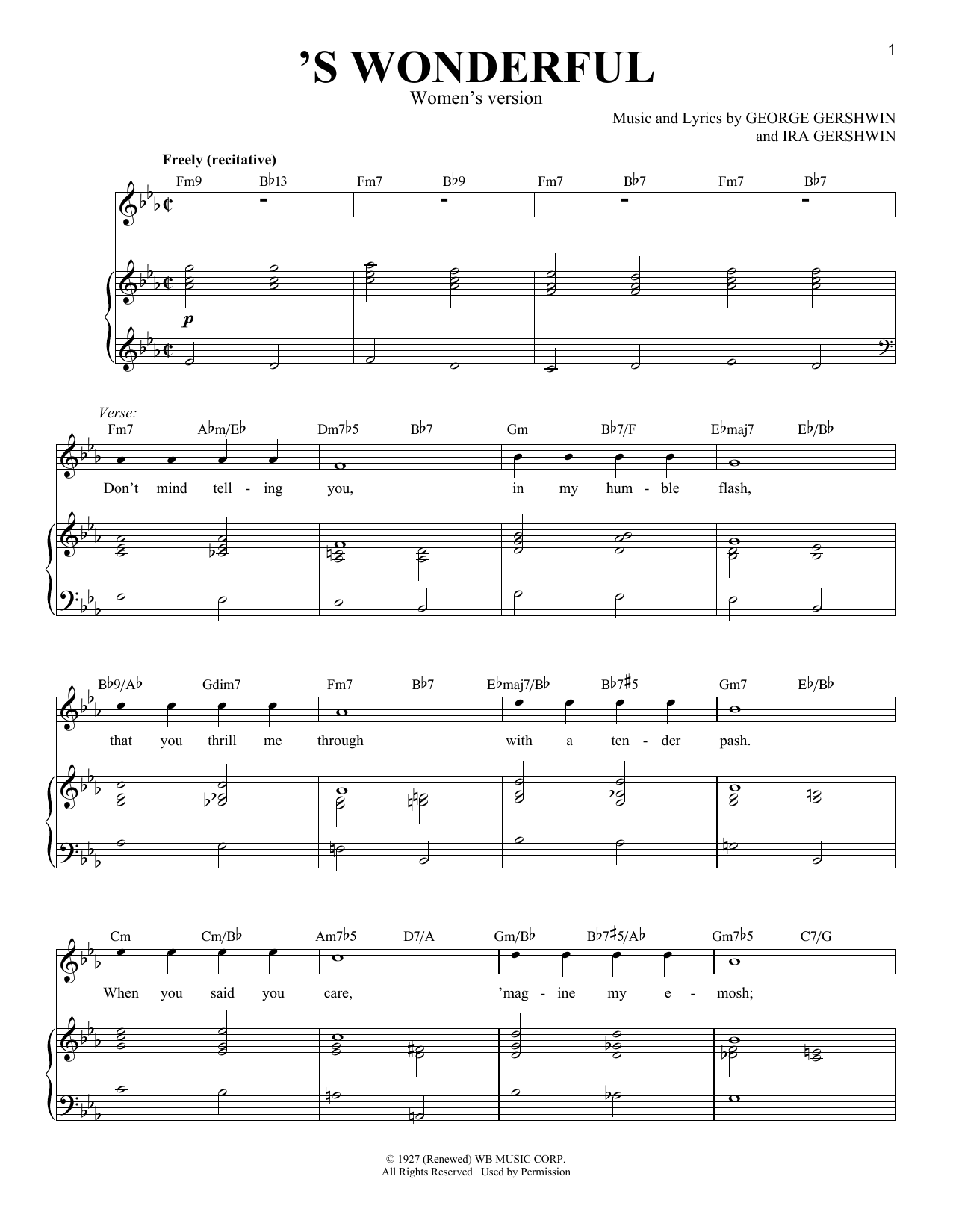 George Gershwin 'S Wonderful [Women's version] sheet music, chords, lyrics - Printable PDF for Piano & Vocal