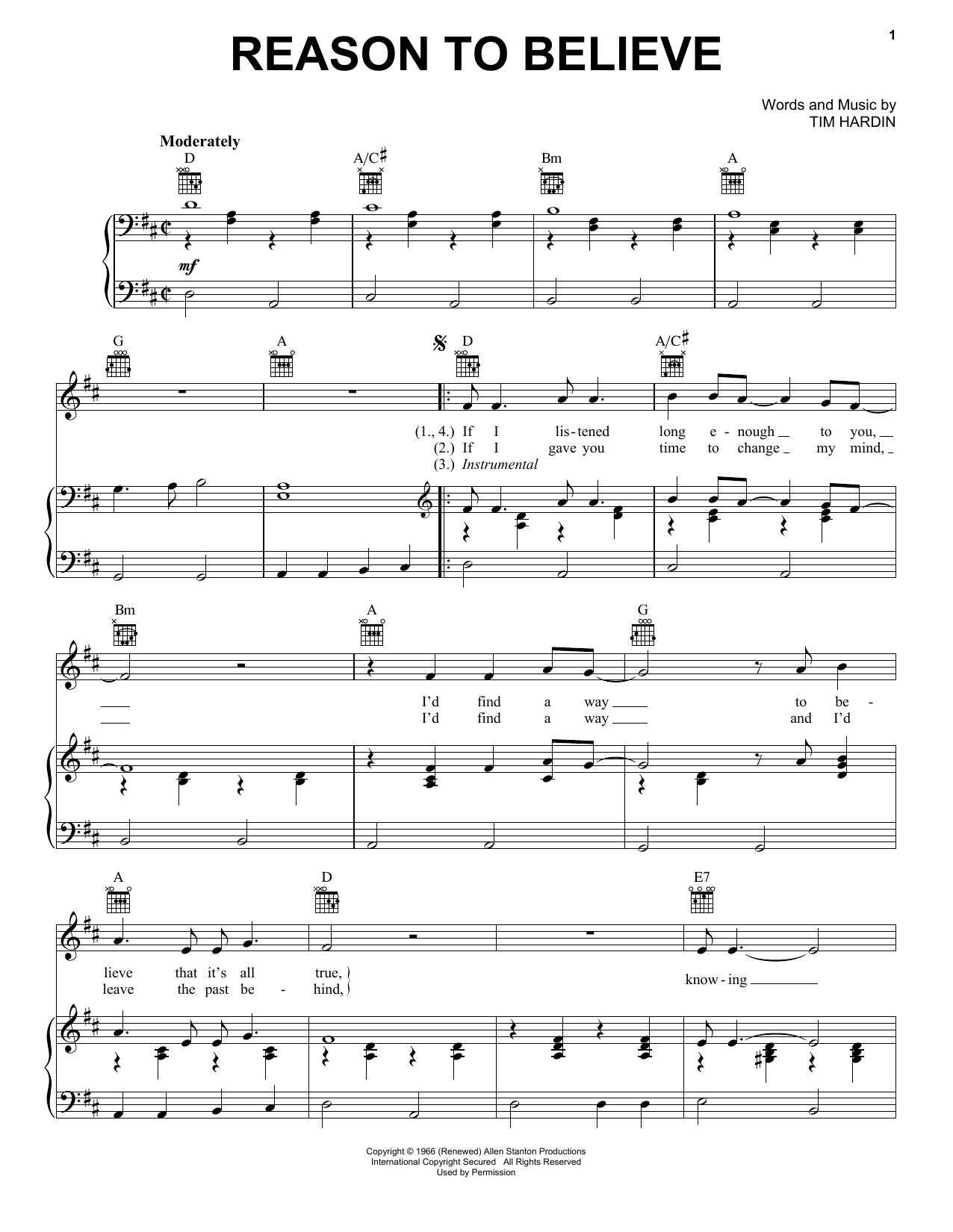 So, go ahead and download Reason To Believe sheet music and start playing this wonderful score in bare minutes.