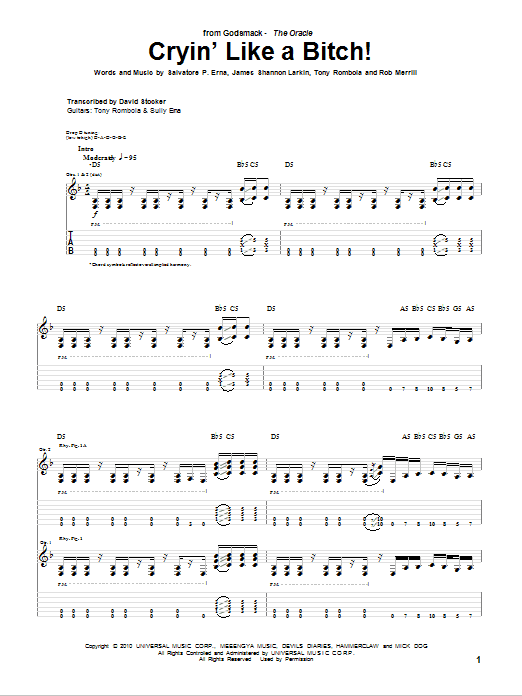 Download 9-Page Godsmack Cryin' Like A Bitch! sheet music | Printable PDF Digital Notes