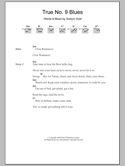 Golden Silvers True No. 9 Blues sheet music, chords, lyrics - Printable PDF for Lyrics & Chords