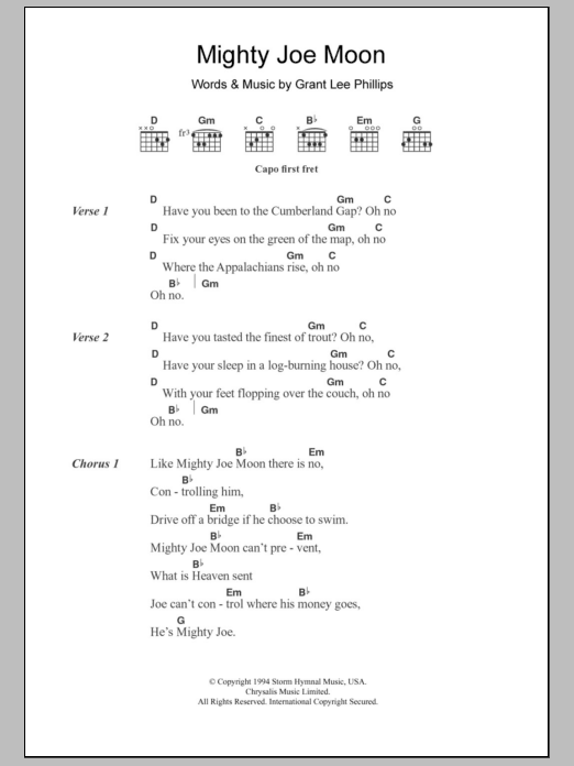 Grant Lee Buffalo Mighty Joe Moon sheet music, chords, lyrics - Printable PDF for Lyrics & Chords