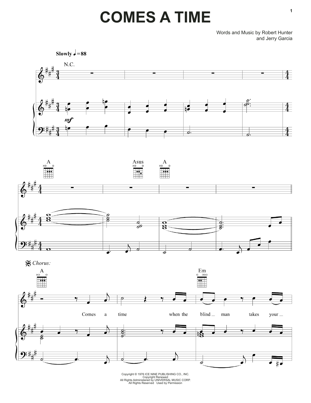 Grateful Dead Comes A Time sheet music, chords, lyrics - Printable PDF for Piano, Vocal & Guitar (Right-Hand Melody)