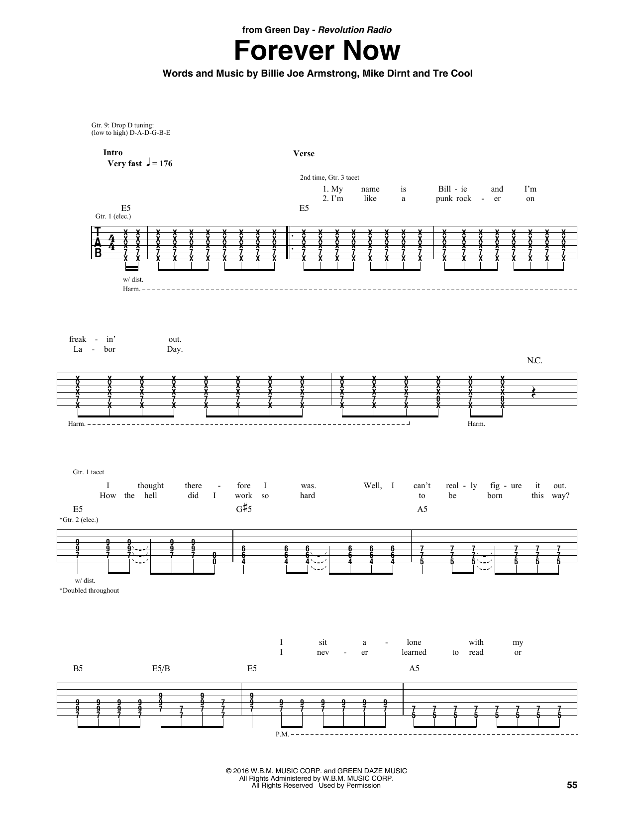 Green Day Forever Now sheet music, chords, lyrics - Printable PDF for Guitar Tab