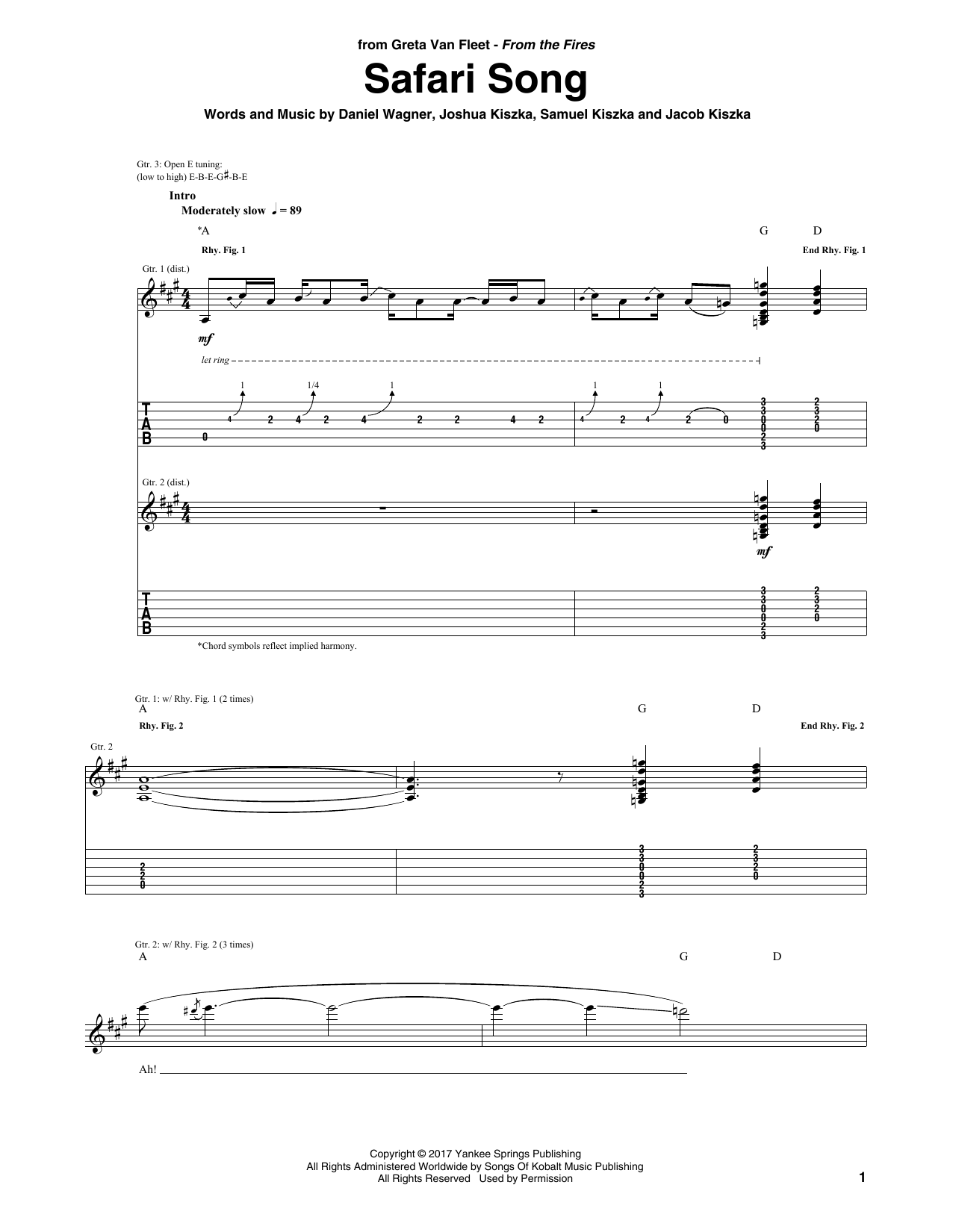 Greta Van Fleet Safari Song sheet music, chords, lyrics - Printable PDF for Guitar Tab