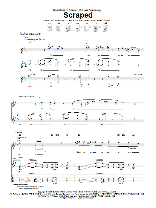 Guns N' Roses Scraped sheet music, chords, lyrics - Printable PDF for Guitar Tab