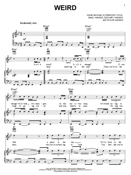 Hanson Weird sheet music, chords, lyrics - Printable PDF for Piano, Vocal & Guitar (Right-Hand Melody)