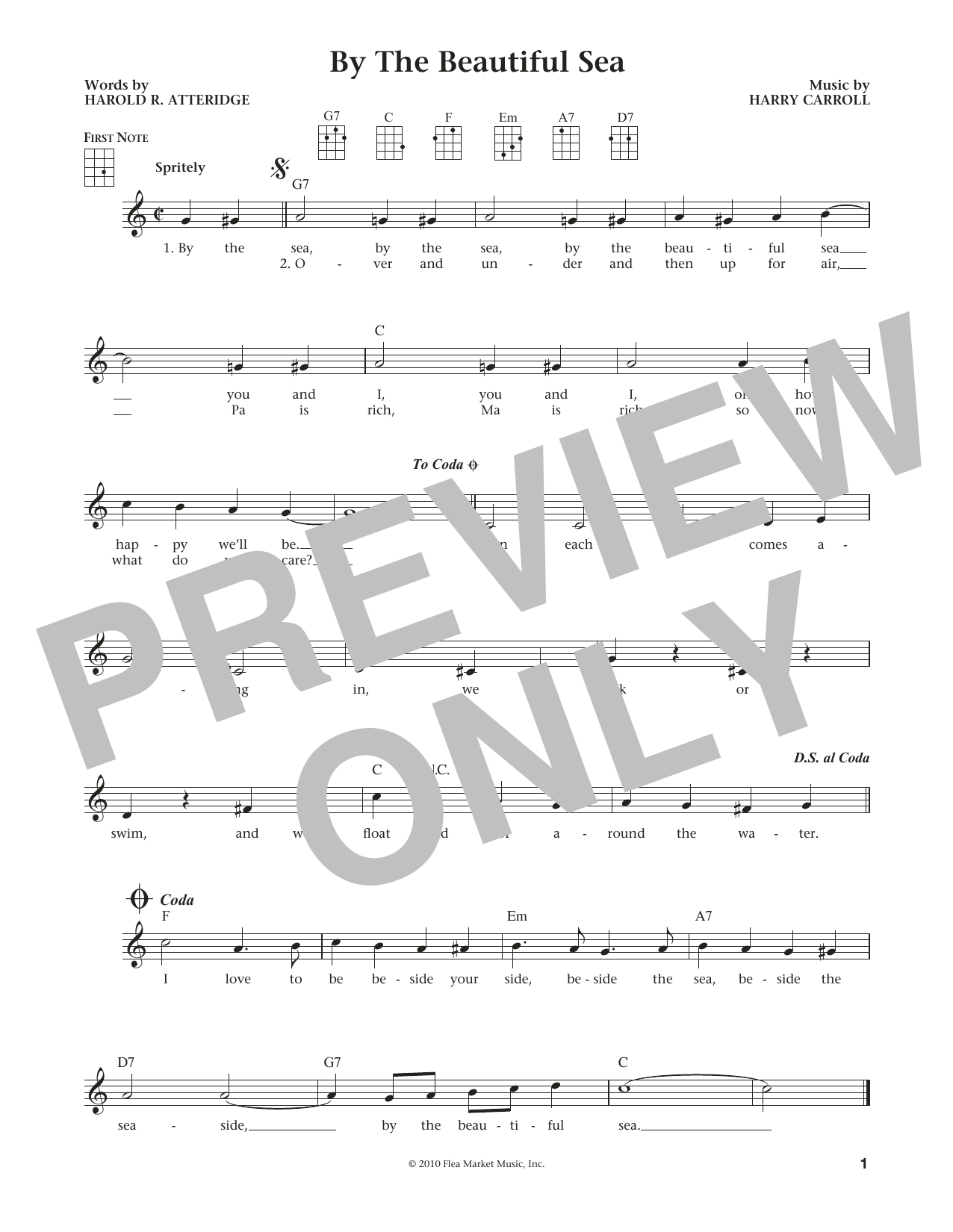Harold R. Atteridge By The Beautiful Sea sheet music, chords, lyrics - Printable PDF for Ukulele
