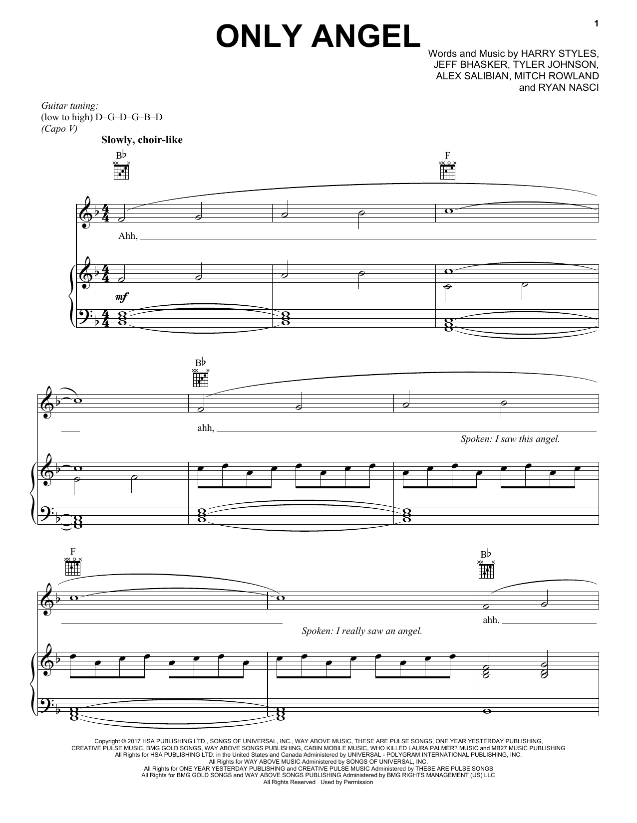 Harry Styles Only Angel sheet music, chords, lyrics - Printable PDF for Piano, Vocal & Guitar (Right-Hand Melody)