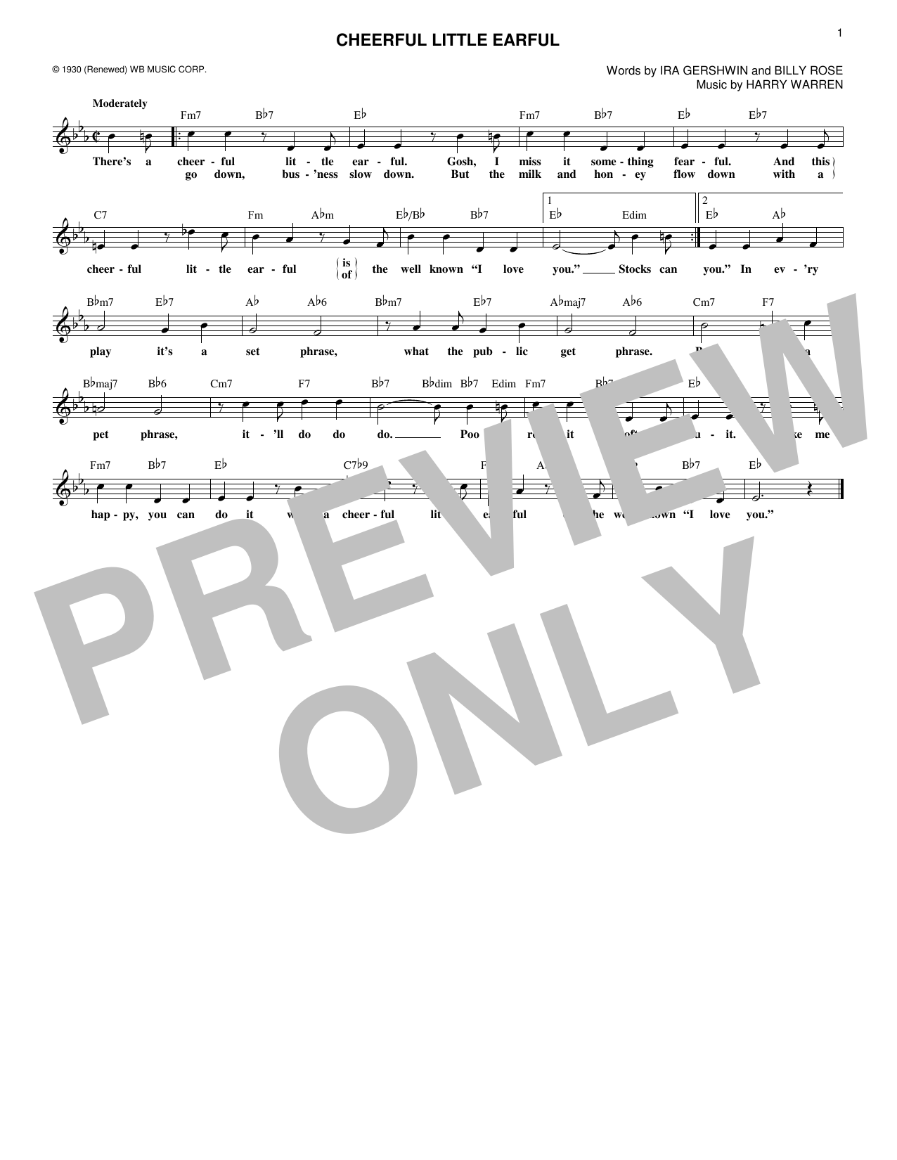 Harry Warren Cheerful Little Earful sheet music, chords, lyrics - Printable PDF for Melody Line, Lyrics & Chords