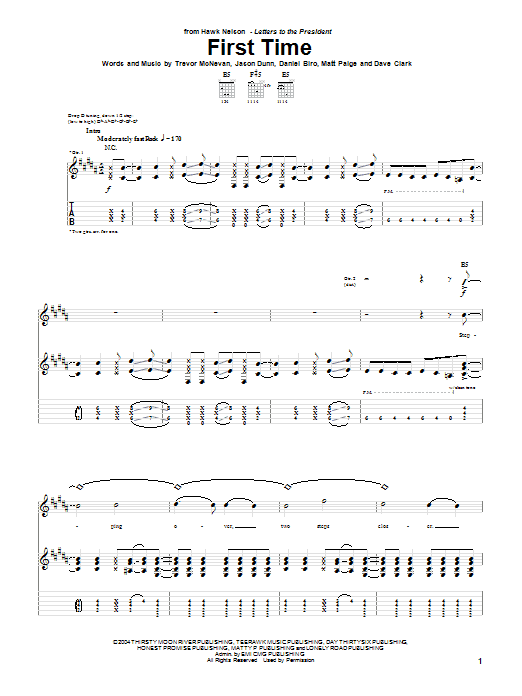 Hawk Nelson First Time sheet music, chords, lyrics - Printable PDF for Guitar Tab