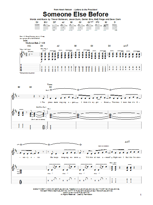 Hawk Nelson Someone Else Before sheet music, chords, lyrics - Printable PDF for Guitar Tab