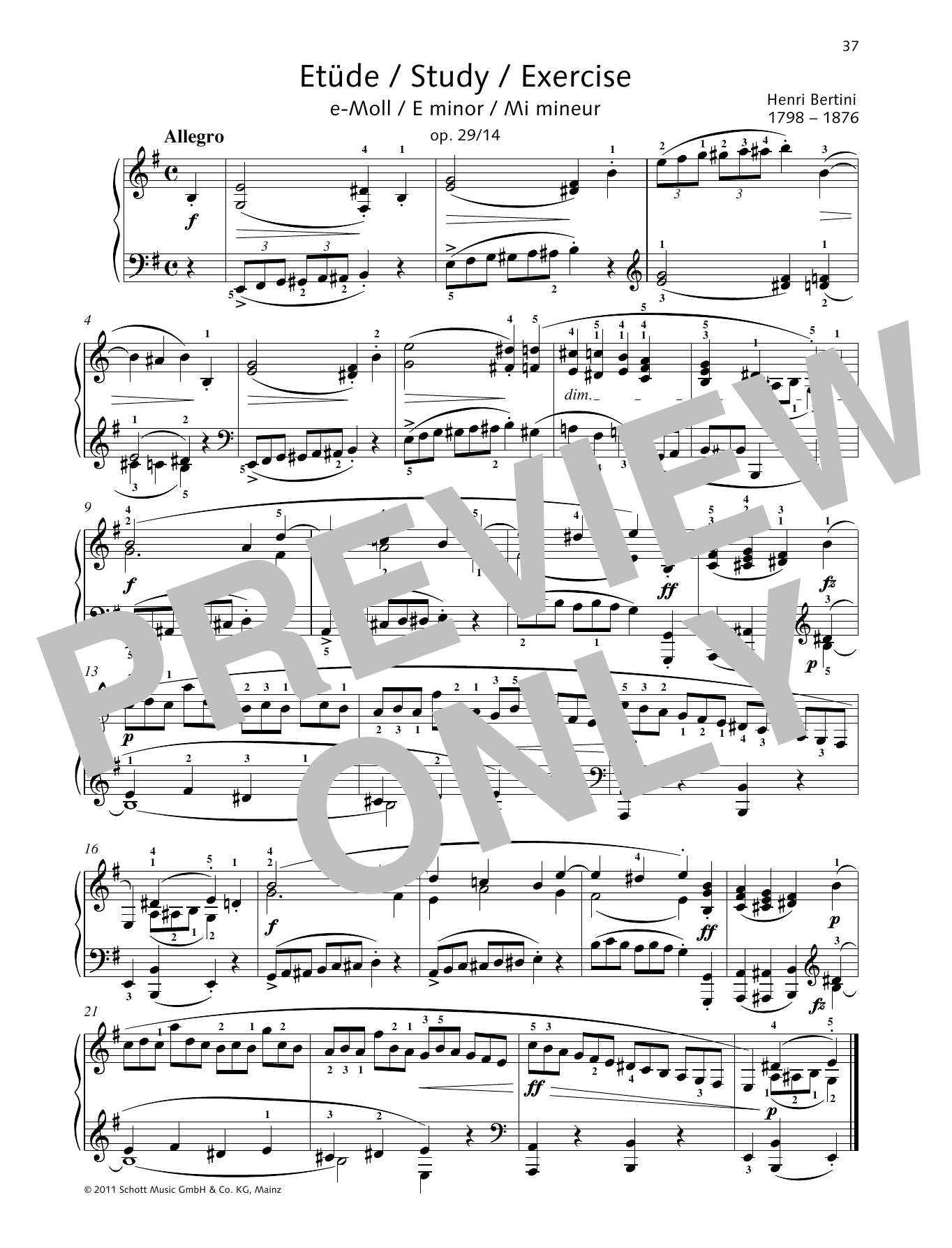 Henri Bertini "Study E minor" Sheet Music