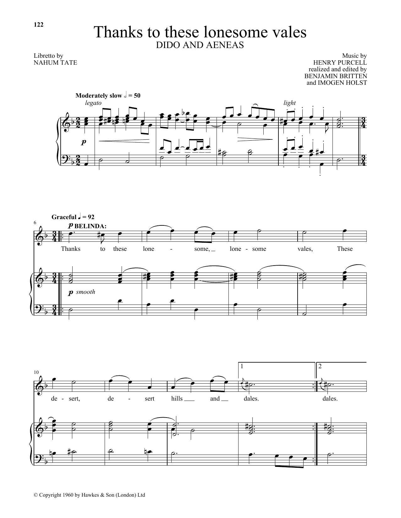 Thanks to these lonesome vales (from Dido And Aeneas) Sheet Music Sample