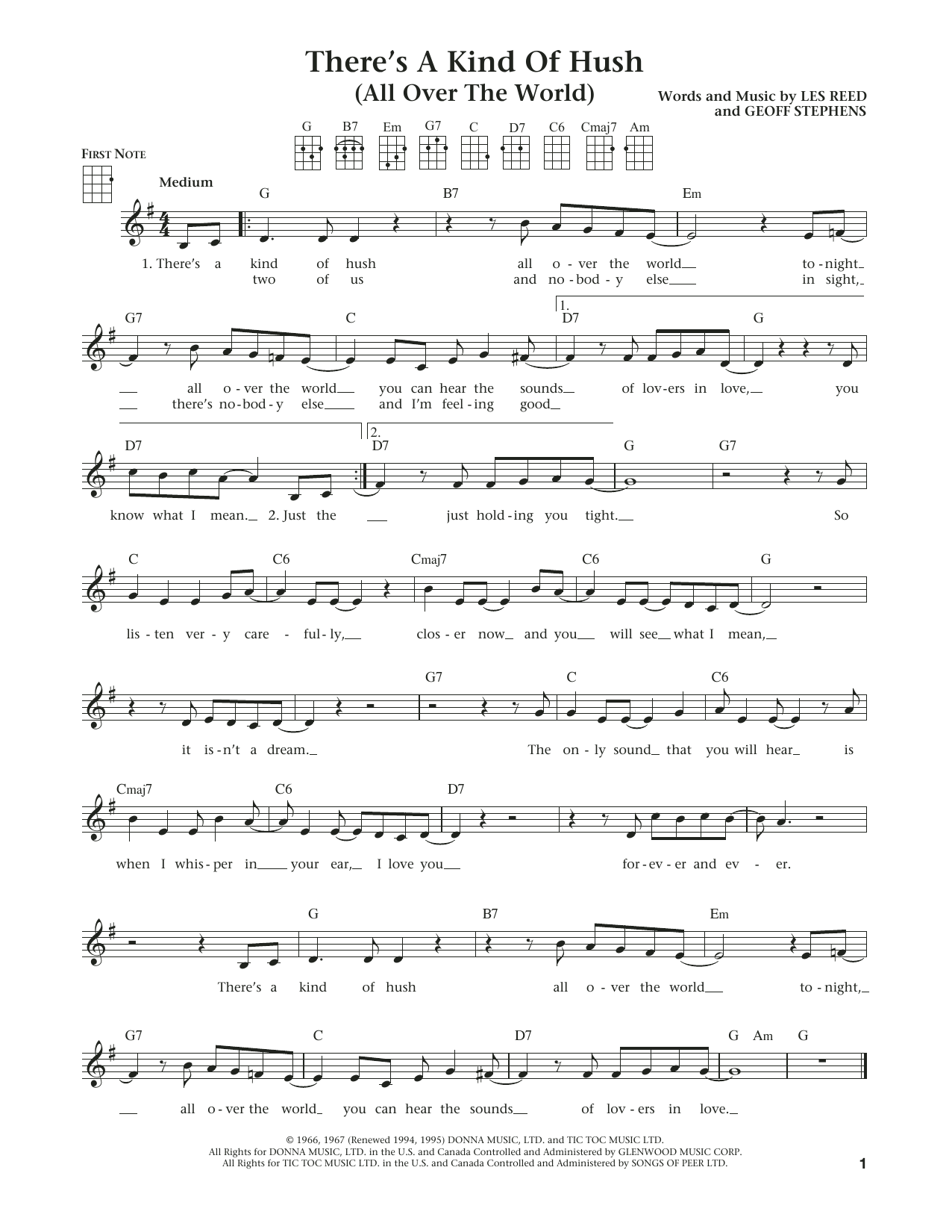 So, go ahead and download There's A Kind Of Hush (All Over The World) (from The Daily Ukulele) (arr. Liz and Jim Beloff) sheet music and start playing this wonderful score in bare minutes.