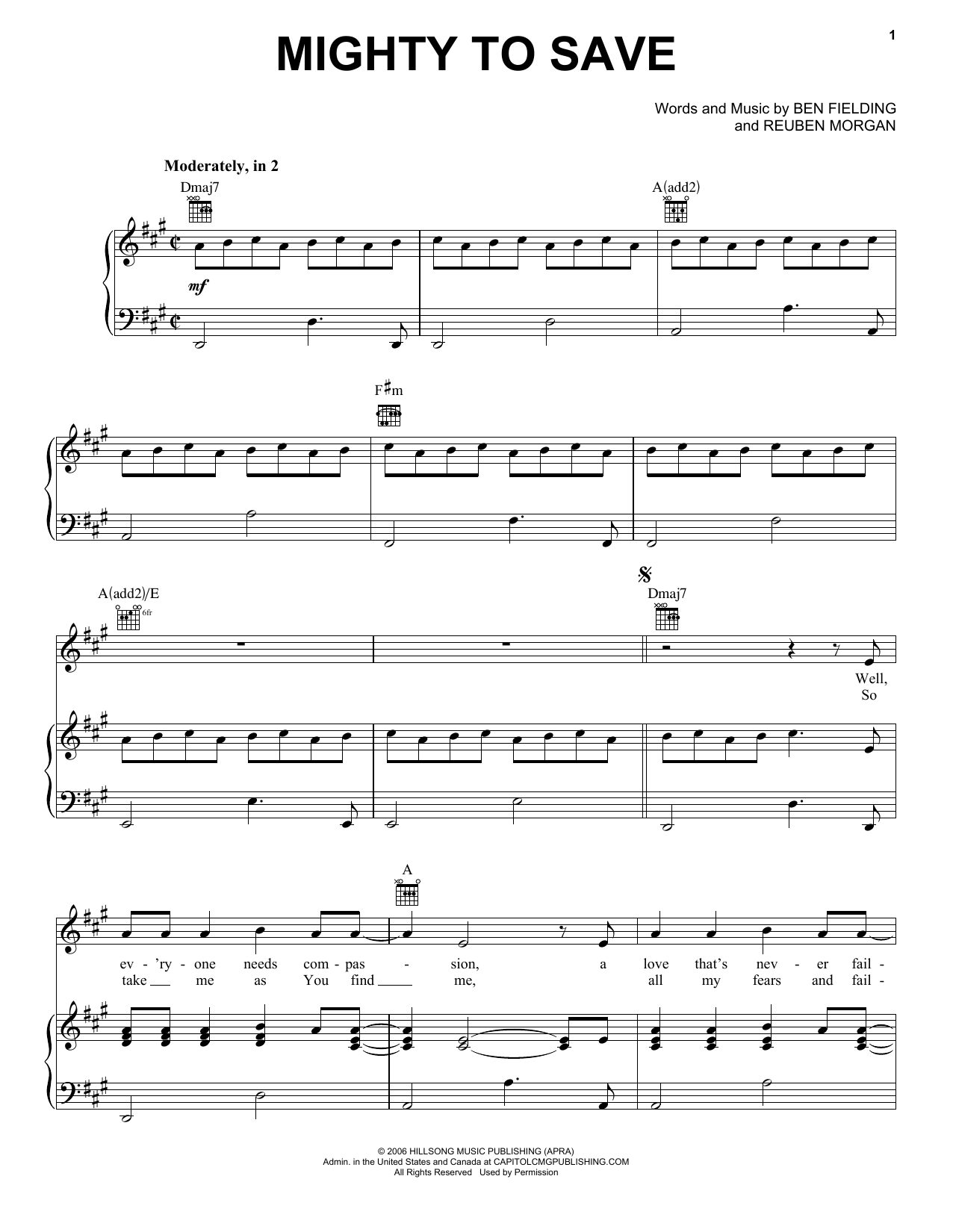 Hillsong Mighty To Save sheet music, chords, lyrics - Printable PDF for Piano, Vocal & Guitar (Right-Hand Melody)