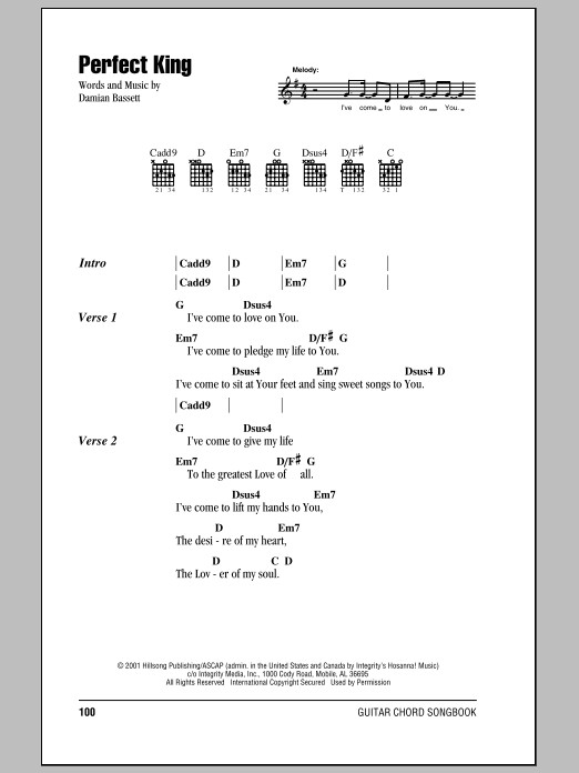 Hillsong United Perfect King sheet music, chords, lyrics - Printable PDF for Lyrics & Chords