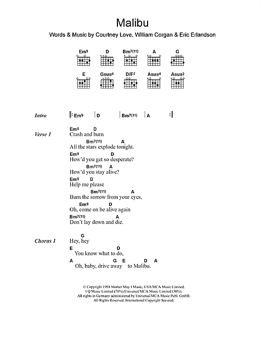 Hole Malibu sheet music, chords, lyrics - Printable PDF for Lyrics & Chords