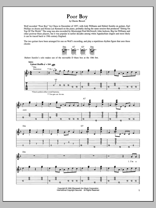 More Arrangements Of: 'Poor Boy'     More notes from Howlin' Wolf »