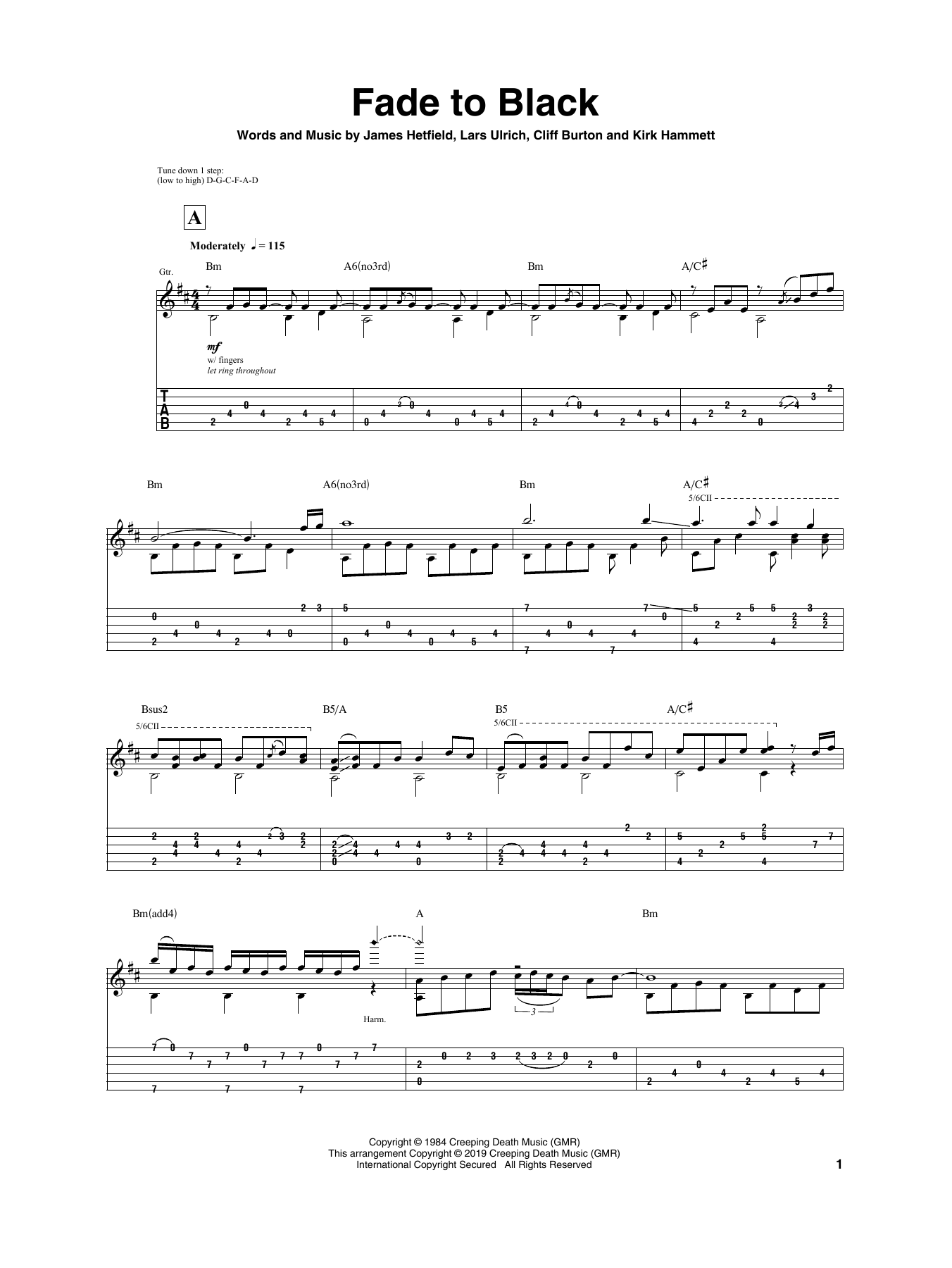 Fade To Black Sheet Music Sample