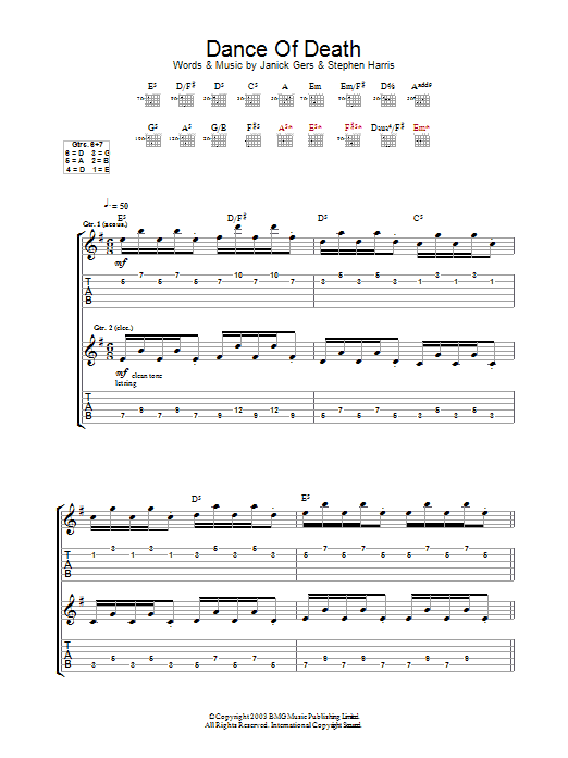 Iron Maiden Dance Of Death sheet music, chords, lyrics - Printable PDF for Guitar Tab