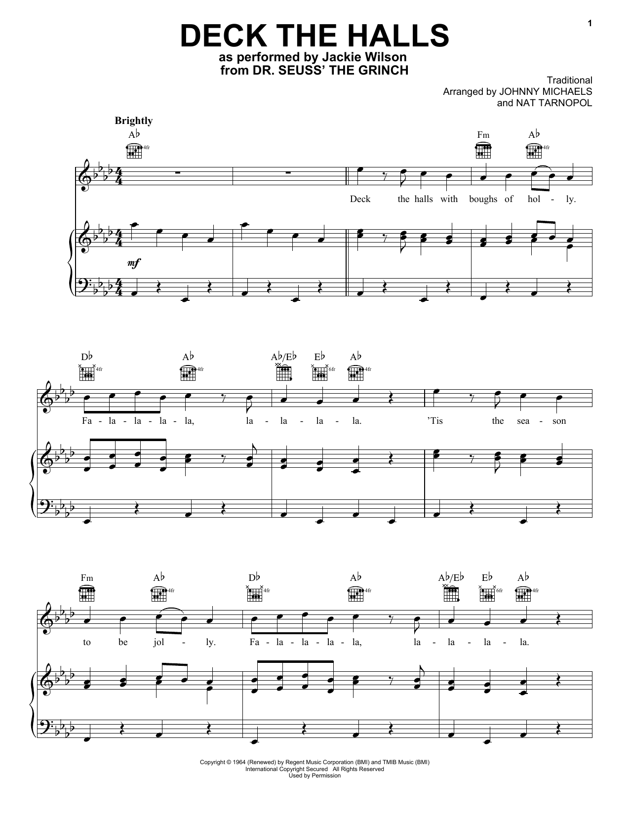Jackie Wilson Deck The Hall (from The Grinch) sheet music, chords, lyrics - Printable PDF for Piano, Vocal & Guitar (Right-Hand Melody)