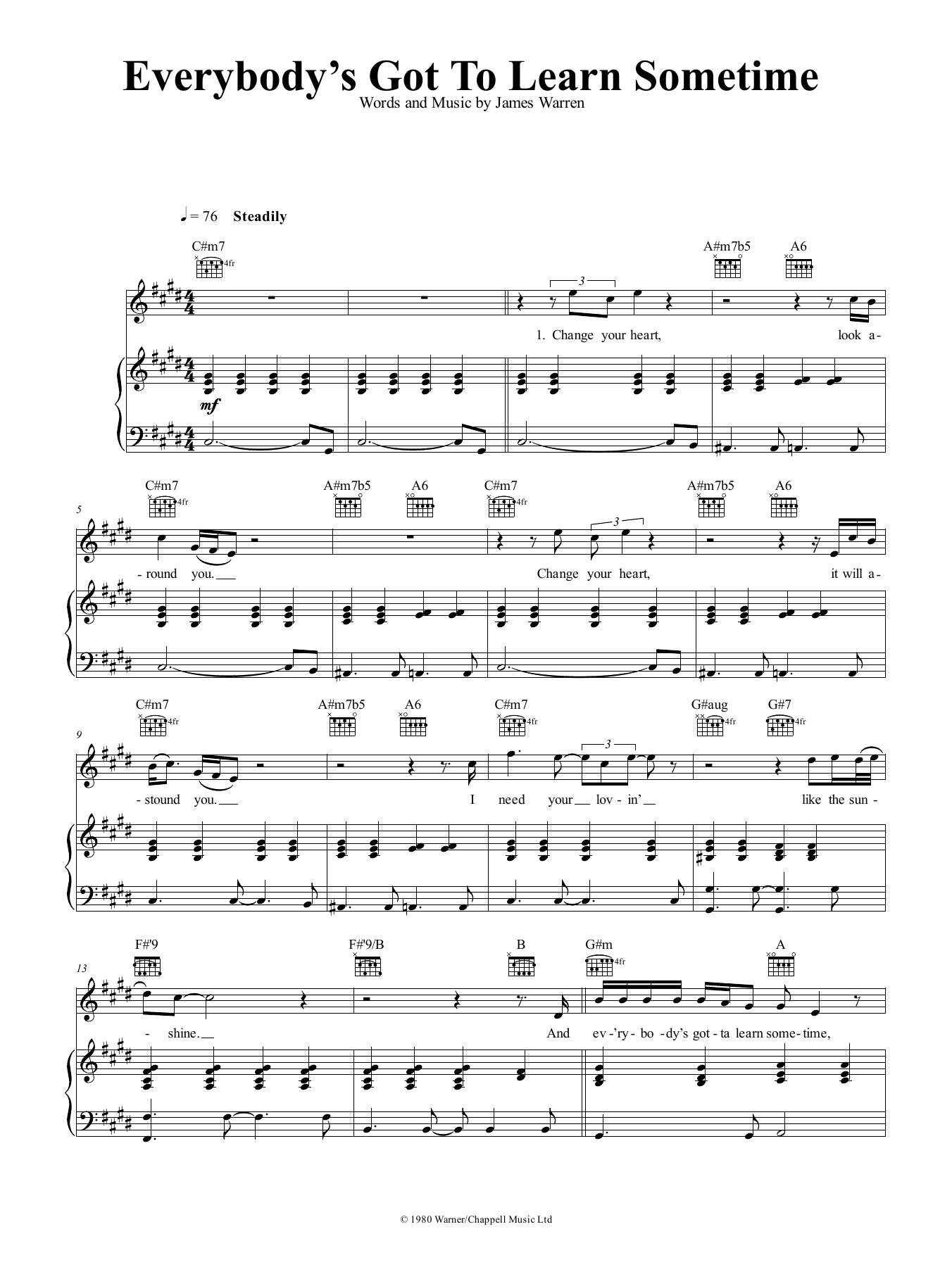 James Warren Everybody's Got To Learn Sometime sheet music, chords, lyrics - Printable PDF for Piano, Vocal & Guitar (Right-Hand Melody)