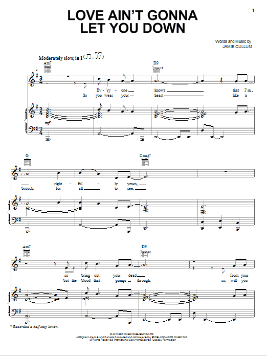 Jamie Cullum "Love Ain't Gonna Let You Down" Sheet Music