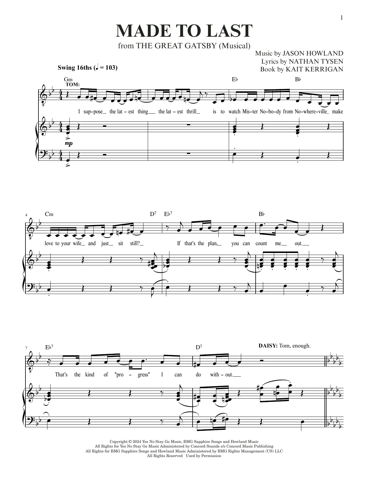 Jason Howland & Nathan Tysen Made To Last (from The Great Gatsby) sheet music, chords, lyrics - Printable PDF for Piano & Vocal