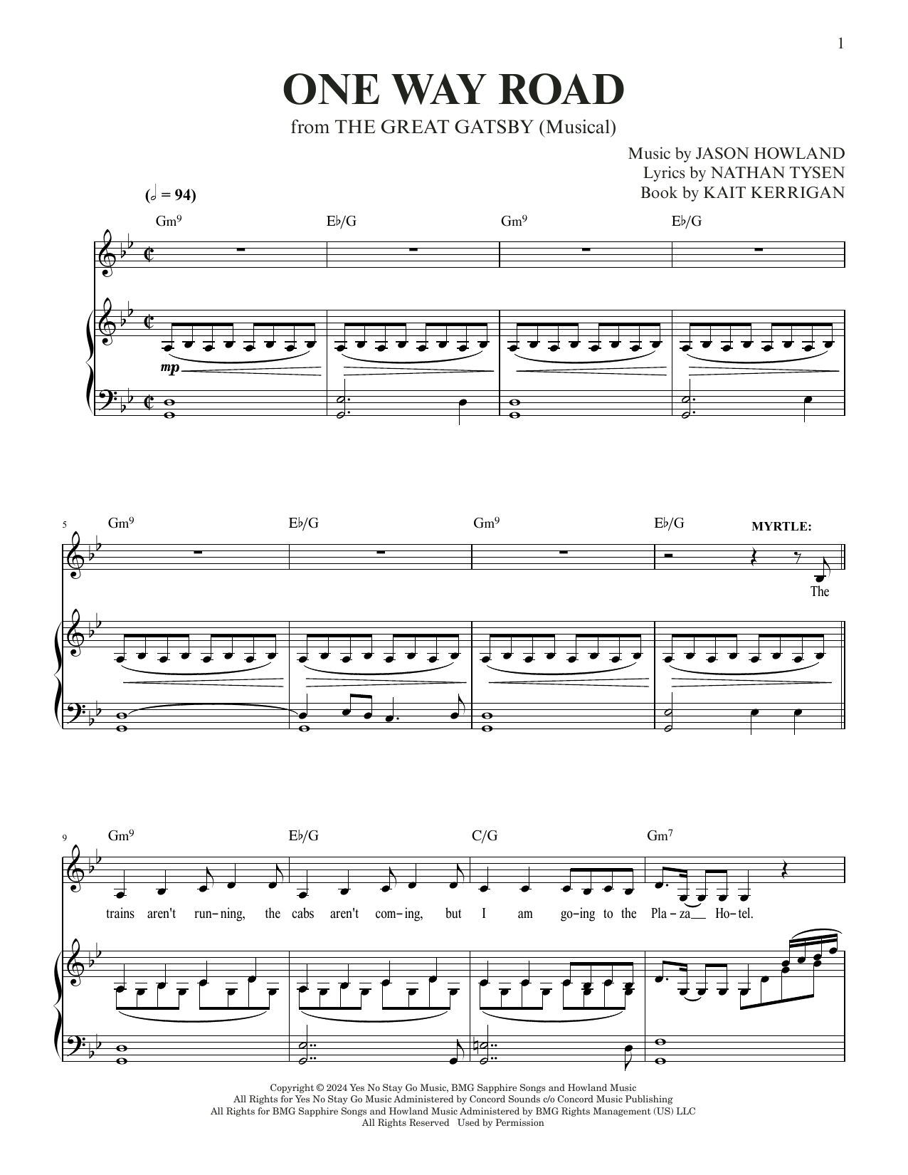 Jason Howland & Nathan Tysen One Way Road (from The Great Gatsby) sheet music, chords, lyrics - Printable PDF for Piano & Vocal