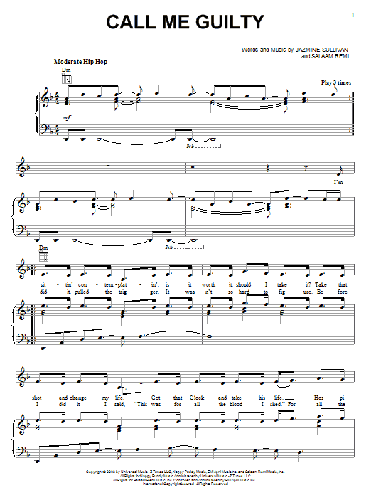 Jazmine Sullivan Call Me Guilty sheet music, chords, lyrics - Printable PDF for Piano, Vocal & Guitar (Right-Hand Melody)