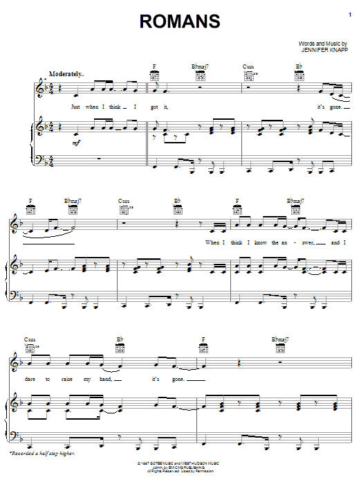 Jennifer Knapp Romans sheet music, chords, lyrics - Printable PDF for Piano, Vocal & Guitar (Right-Hand Melody)