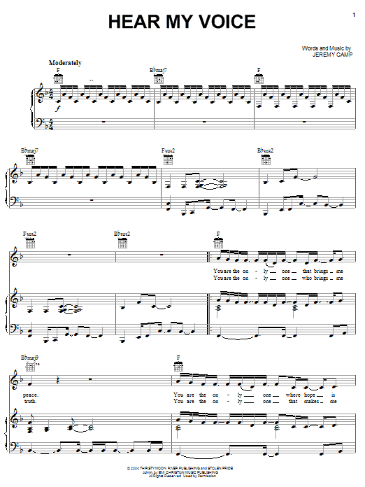 Jeremy Camp Hear My Voice sheet music, chords, lyrics - Printable PDF for Piano, Vocal & Guitar (Right-Hand Melody)