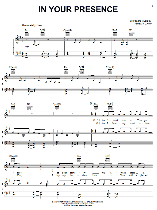 Jeremy Camp In Your Presence sheet music, chords, lyrics - Printable PDF for Piano, Vocal & Guitar (Right-Hand Melody)