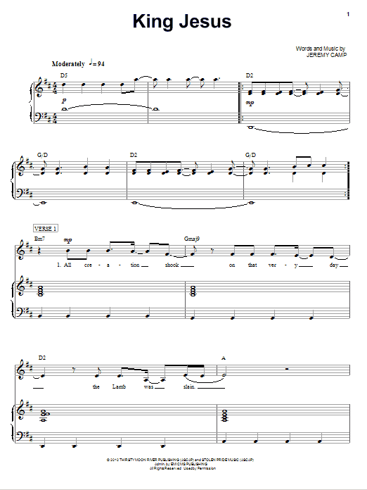 Jeremy Camp King Jesus sheet music, chords, lyrics - Printable PDF for Piano, Vocal & Guitar (Right-Hand Melody)