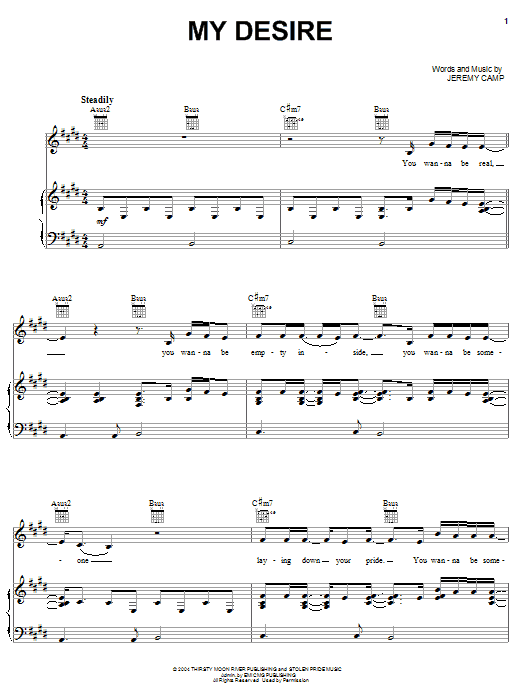 Jeremy Camp My Desire sheet music, chords, lyrics - Printable PDF for Piano, Vocal & Guitar (Right-Hand Melody)