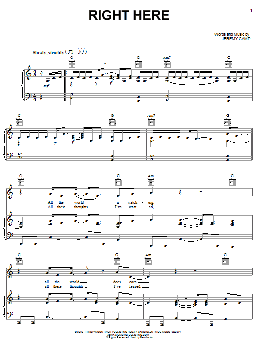 Jeremy Camp Right Here sheet music, chords, lyrics - Printable PDF for Piano, Vocal & Guitar (Right-Hand Melody)