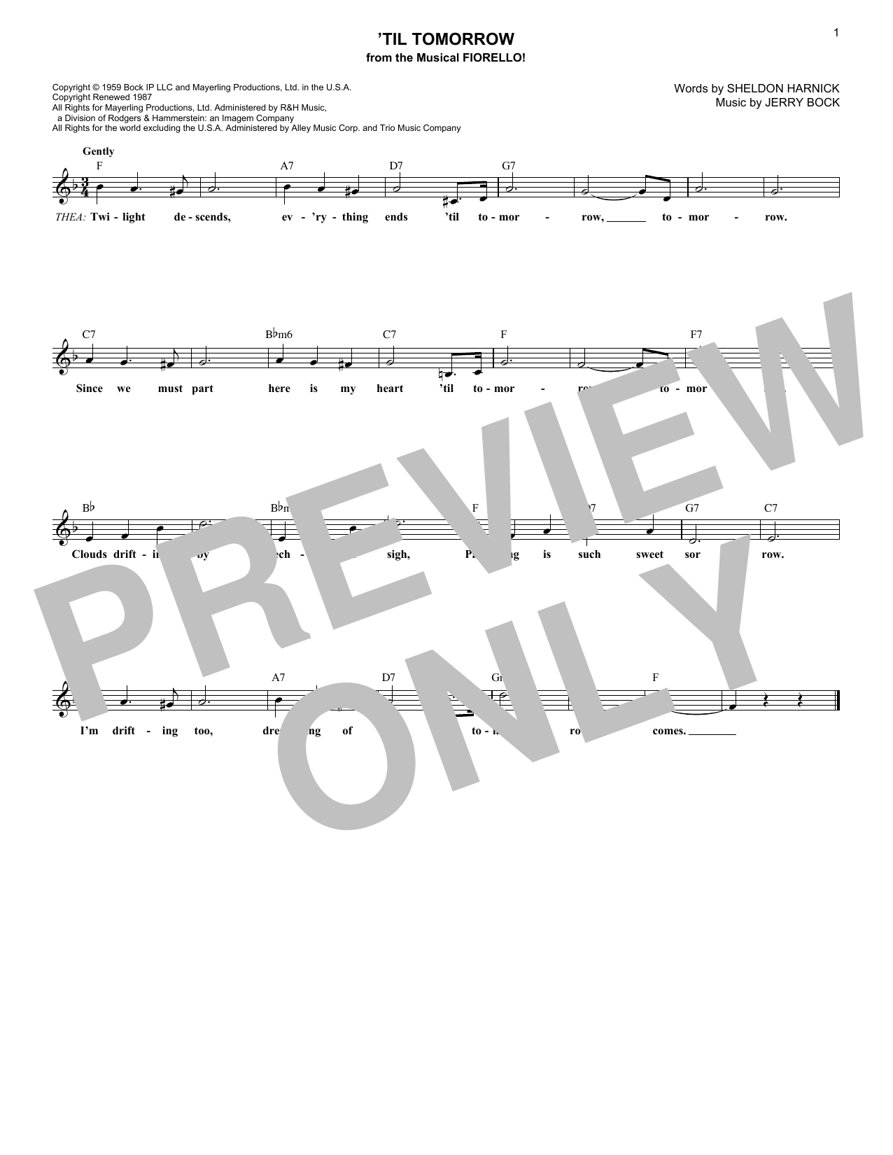 Jerry Bock 'Til Tomorrow sheet music, chords, lyrics - Printable PDF for Melody Line, Lyrics & Chords