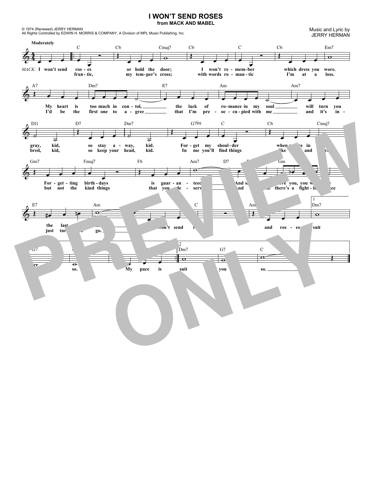 Jerry Herman I Won't Send Roses sheet music, chords, lyrics - Printable PDF for Melody Line, Lyrics & Chords
