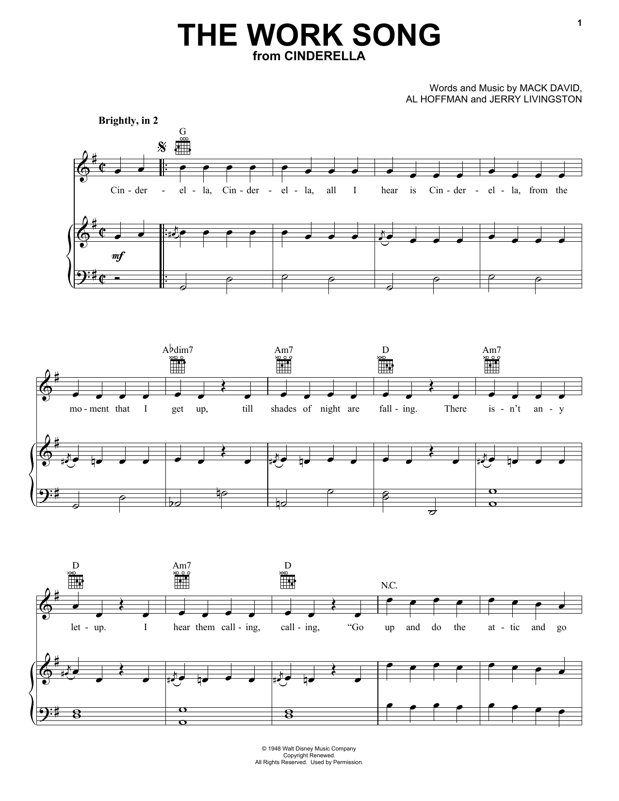 So, go ahead and download The Work Song (from Disney's Cinderella) sheet music and start playing this wonderful score in bare minutes.