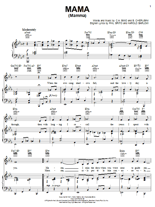 So, go ahead and download Mama (Mamma) sheet music and start playing this wonderful score in bare minutes.