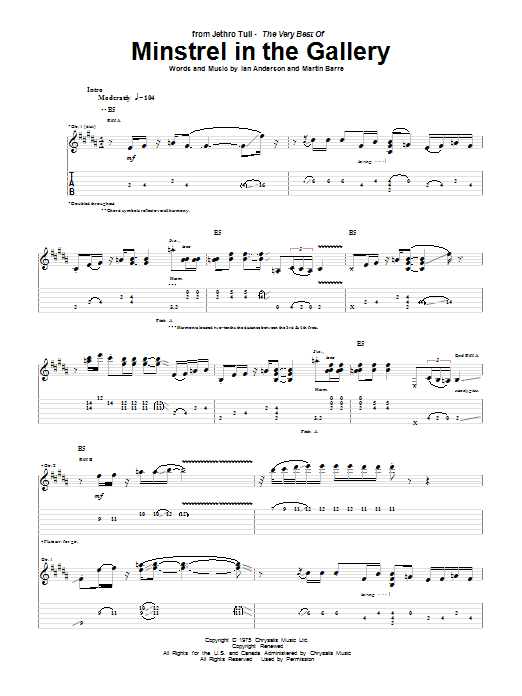 Jethro Tull Minstrel In The Gallery sheet music, chords, lyrics - Printable PDF for Guitar Tab