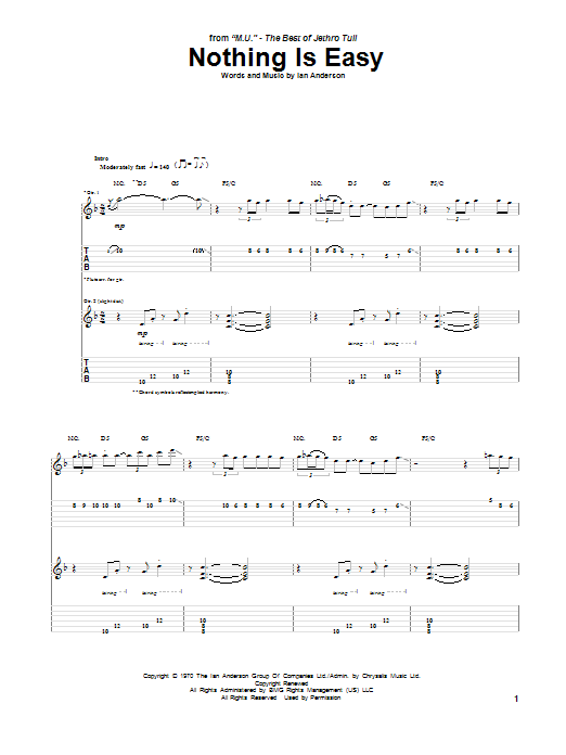 Download 12-Page Jethro Tull Nothing Is Easy sheet music | Printable PDF Digital Notes