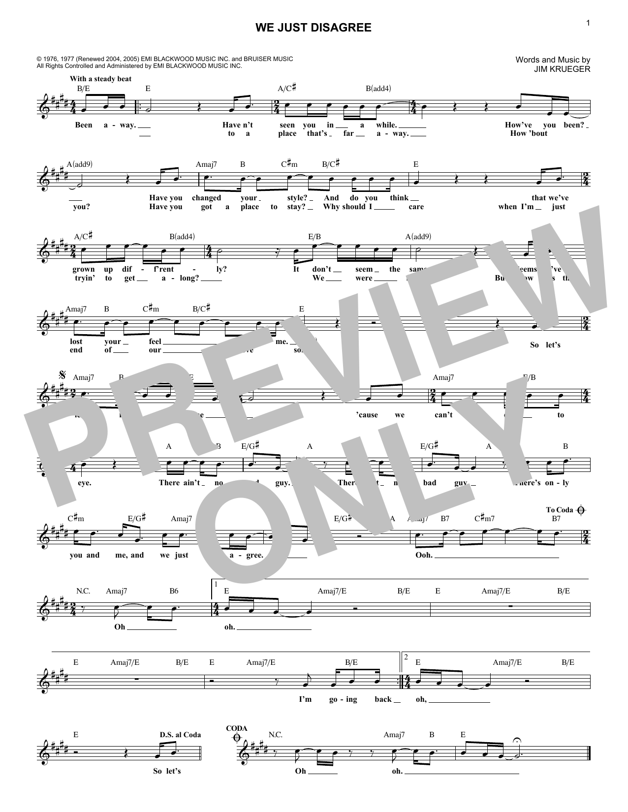 Jim Krueger We Just Disagree sheet music, chords, lyrics - Printable PDF for Melody Line, Lyrics & Chords