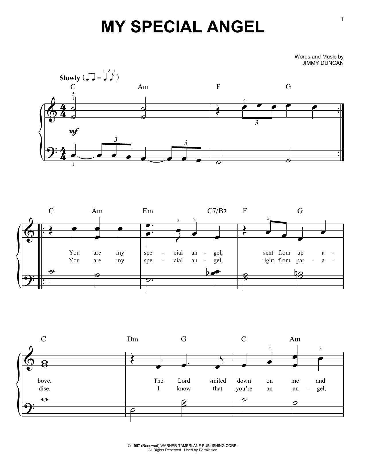 Jimmy Duncan My Special Angel sheet music, chords, lyrics - Printable PDF for Easy Piano