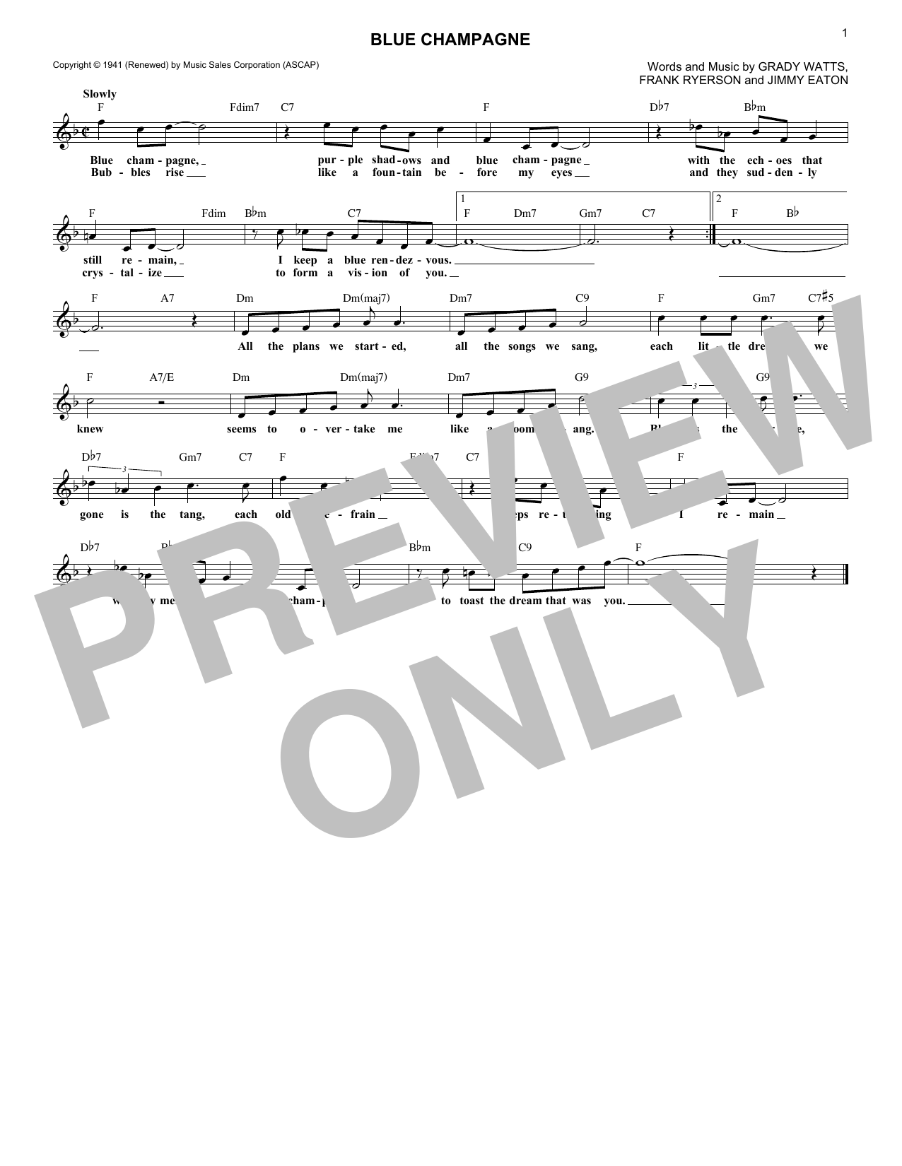 Jimmy Eaton Blue Champagne sheet music, chords, lyrics - Printable PDF for Melody Line, Lyrics & Chords