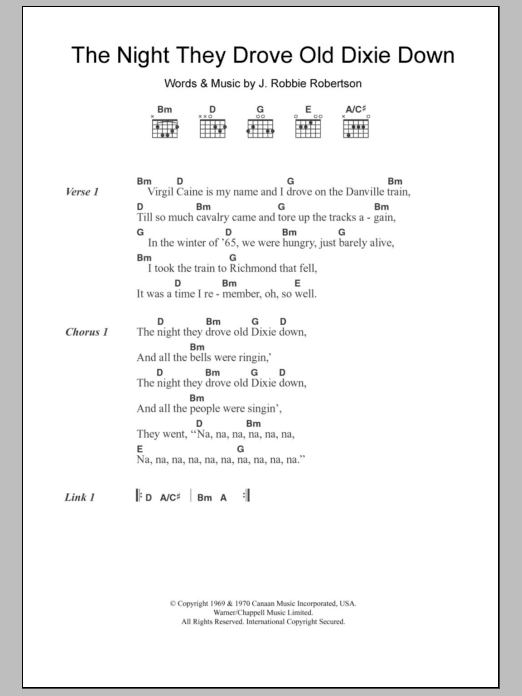 So, go ahead and download The Night They Drove Old Dixie Down sheet music and start playing this wonderful score in bare minutes.