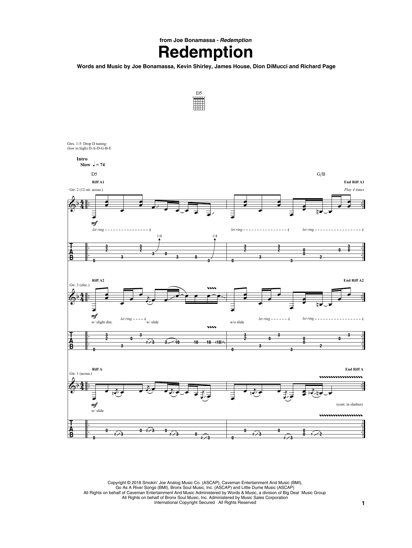 Download 12-Page Joe Bonamassa Redemption sheet music | Printable PDF Digital Notes